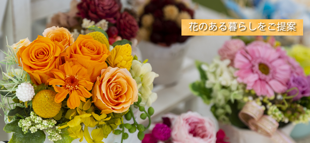 お花をもっと身近に感じてもらいたい。人と人とのつながりをお花で彩りたいという思いで、2001年8月にオープンしました。